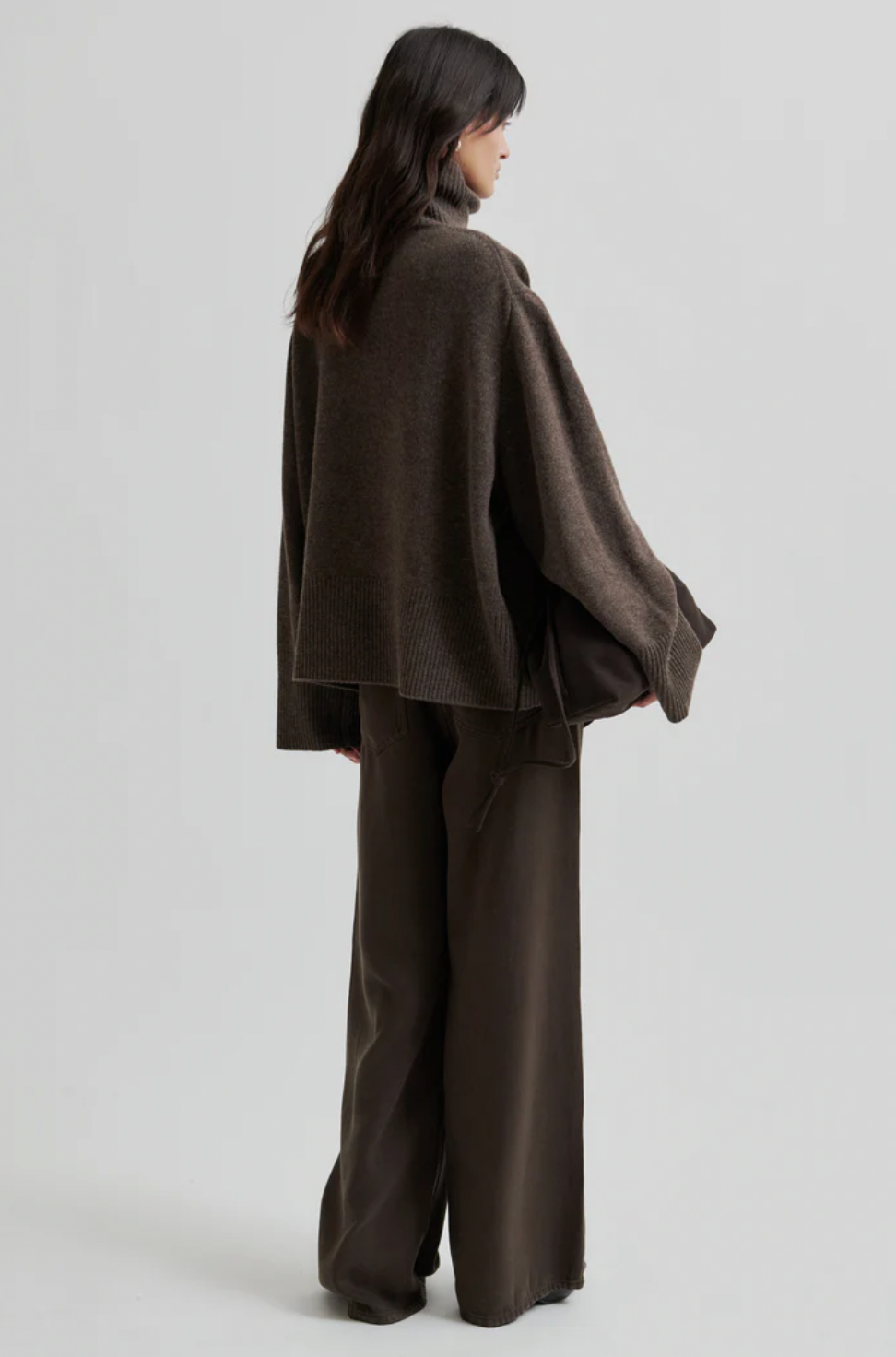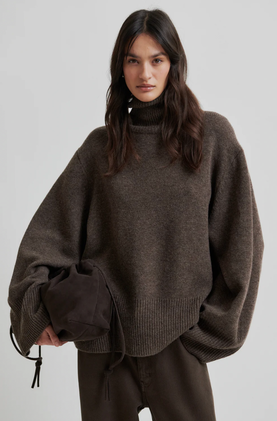 Second Female turtle-neck pullover. The pullover is made in soft wool. Featuring a turtle neck and dropped shoulders with wide, long sleeves. Ribbed neck, cuffs and bottom hem. Extra-wide fit.