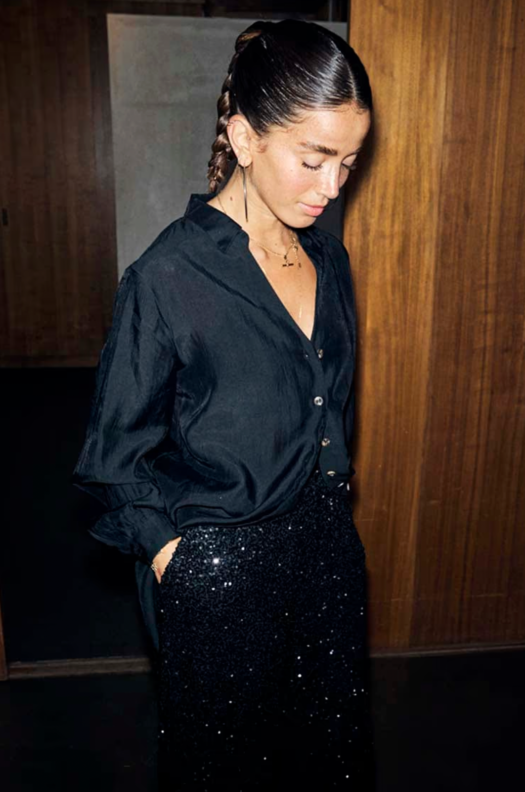 A super wearable black shirt, blouson sleeves and a floaty silhouette. A very slight sheerness for a luxe and lightweight feel but solid enough for everyday work wear. We have added contrast tortoise buttons for an extra touch of interest and gorgeous embroidered logo on the back neck.