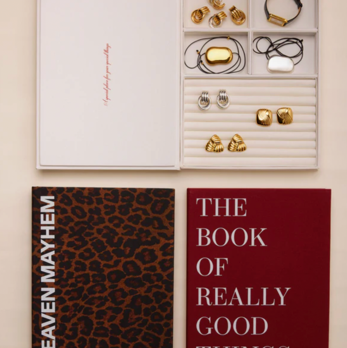 The Jewelry Book Box Collection is Heaven Mayhem’s sculptural approach to storage — where design and function meet. Disguised as timeless hardcovers, each Book Box opens to reveal a hidden interior, thoughtfully designed to store earrings, rings, necklaces, or other keepsakes.