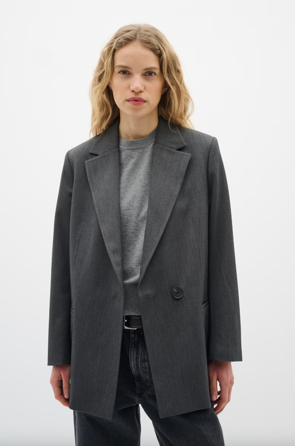 This women's blazer features a relaxed fit, classic single-breasted closure, and notched lapel collar for versatile styling. Designed with practical pockets and comfortable fabric, ideal for both work and casual wear.