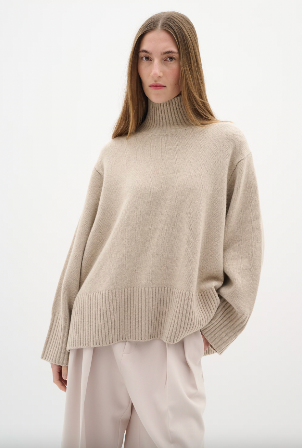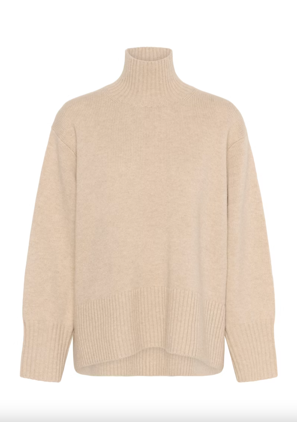 This Gea Turtleneck features a relaxed fit and wide ribbed hem, providing comfort and style. Perfect for layering, its long sleeves and high neckline offer versatile, timeless appeal for work or casual wear.
