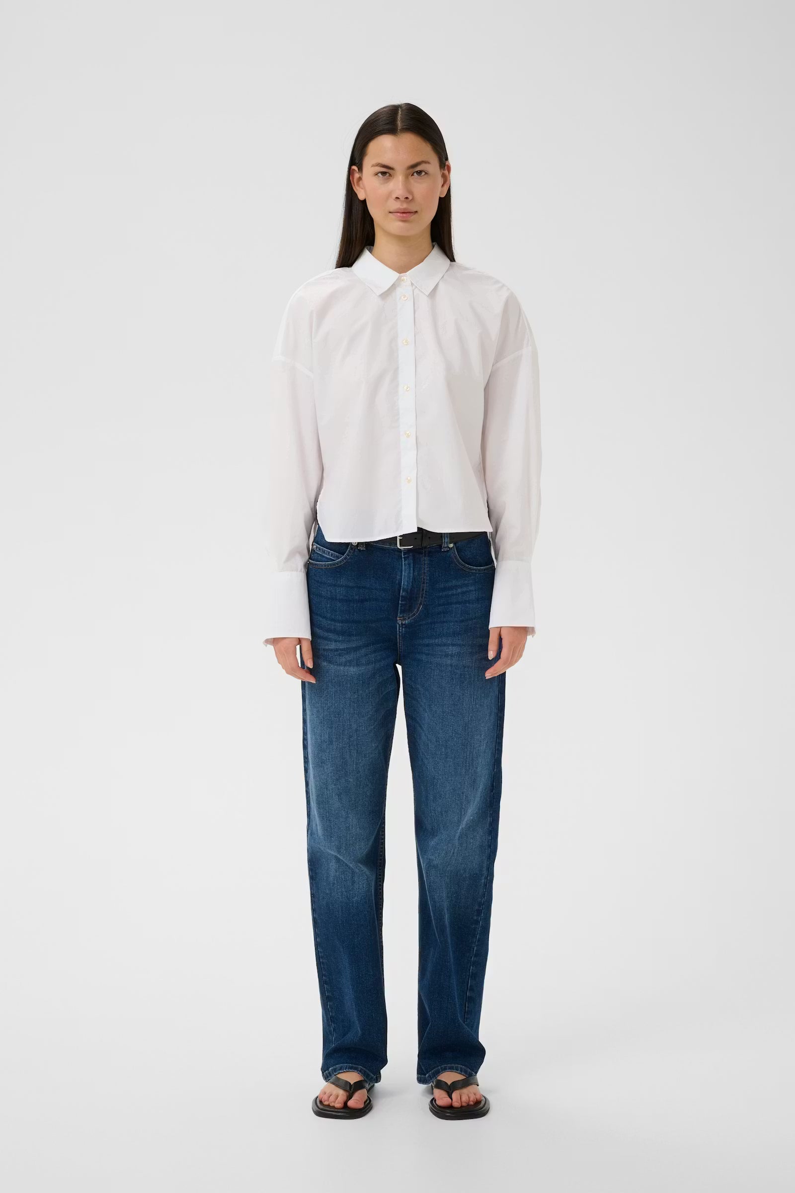 This relaxed fit shirt features a classic pointed collar, long sleeves, dropped shoulders, and a straight, cropped hem. Button-down front and smooth finish add an easy, confident edge to the silhouette.