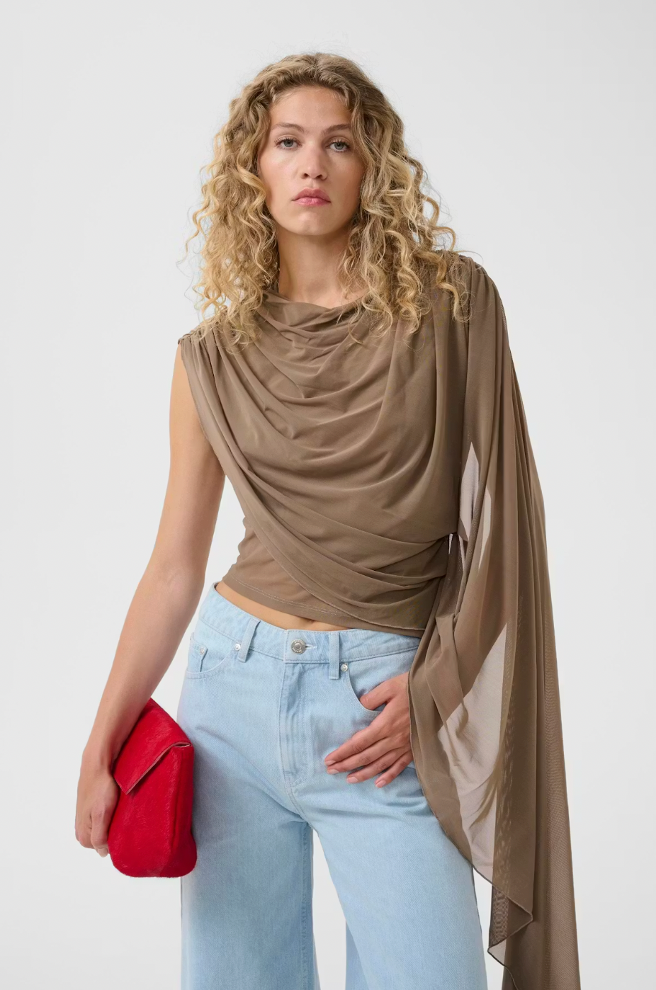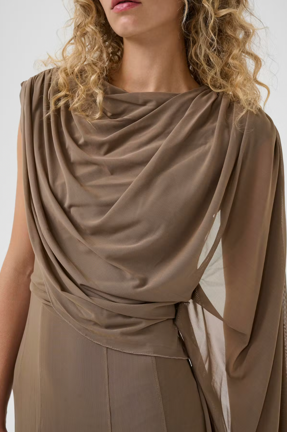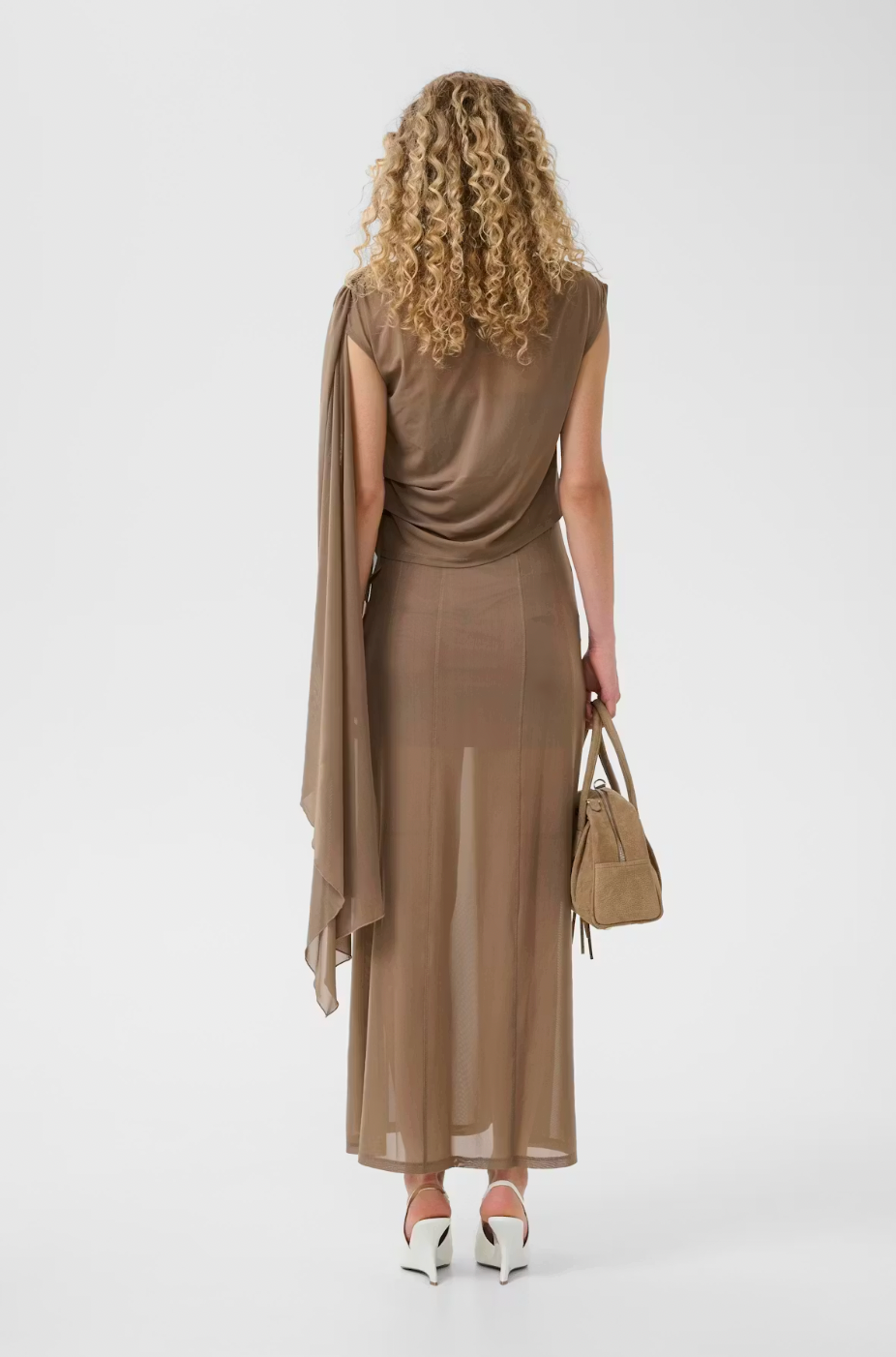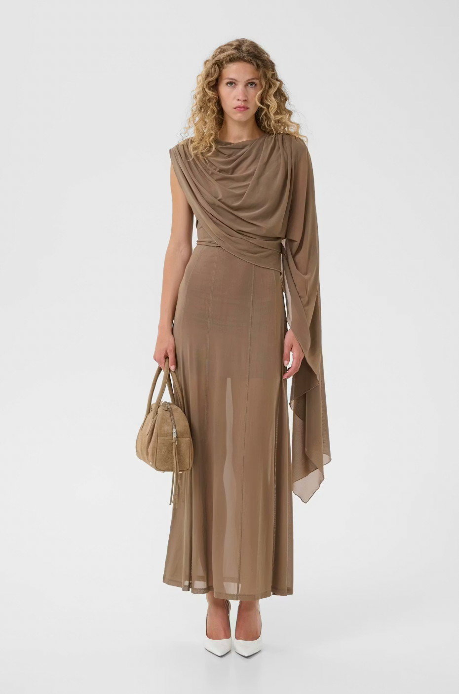 A 2-in-1 style, a dress and a beautiful blouse! This elegant one-shoulder evening dress features a draped neckline, asymmetric sleeve detail, and a maxi length silhouette. Designed for comfort, it offers a flattering fit ideal for formal occasions and special events.