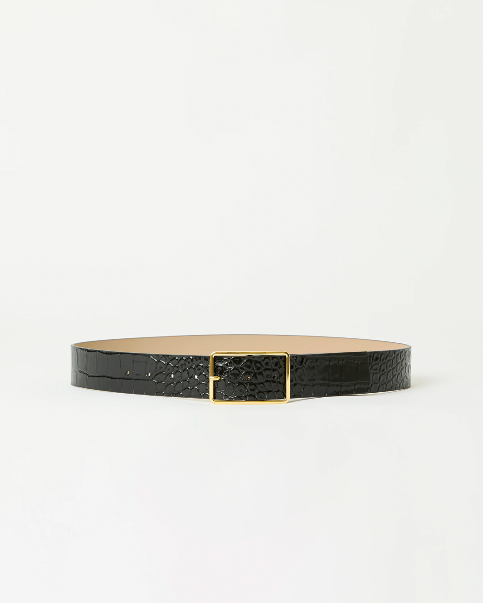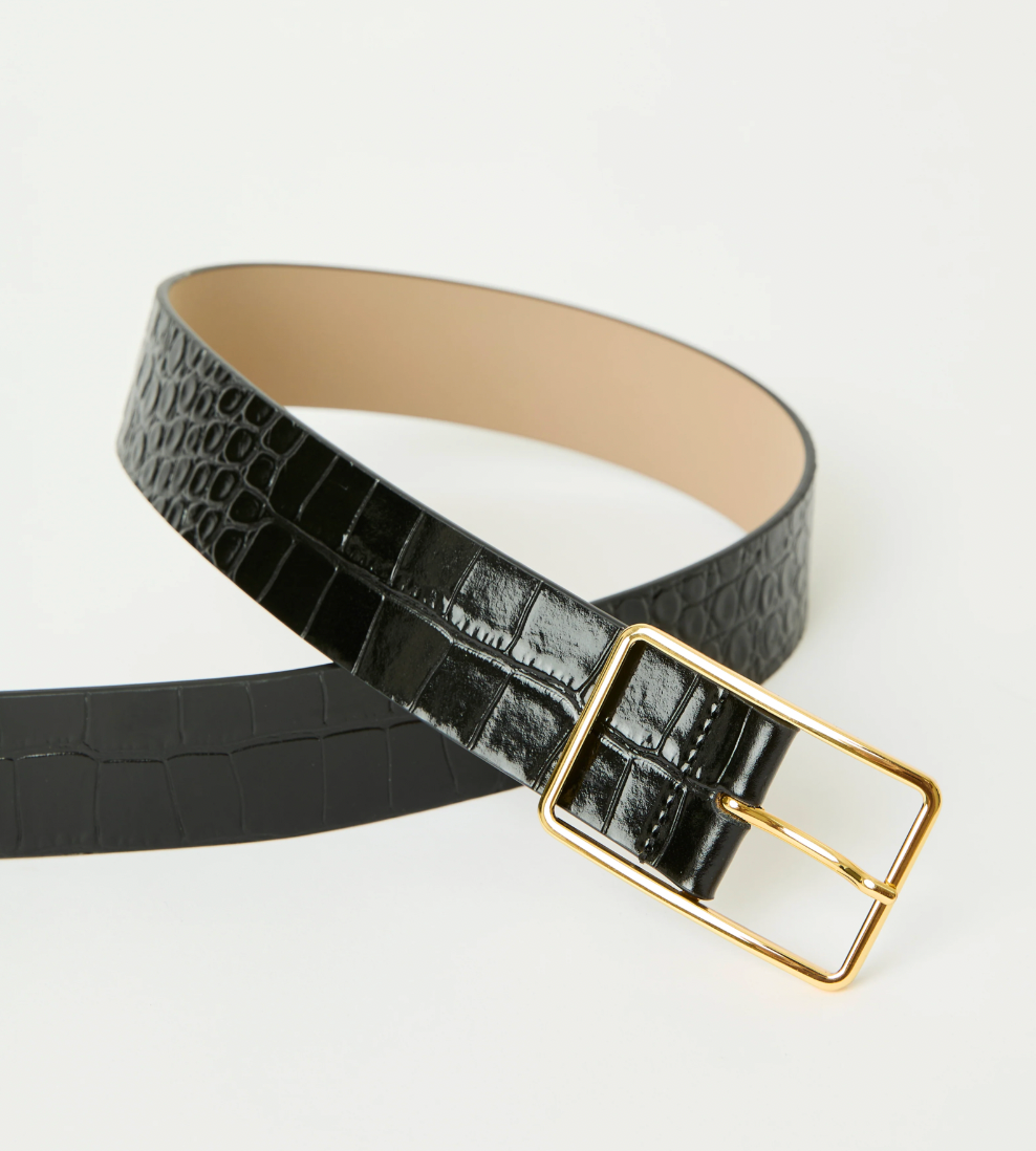 The signature Milla buckle designed with a beautiful croc-embossed Italian leather strap. Style this elegant hip belt to instantly elevate denim and trousers this season.