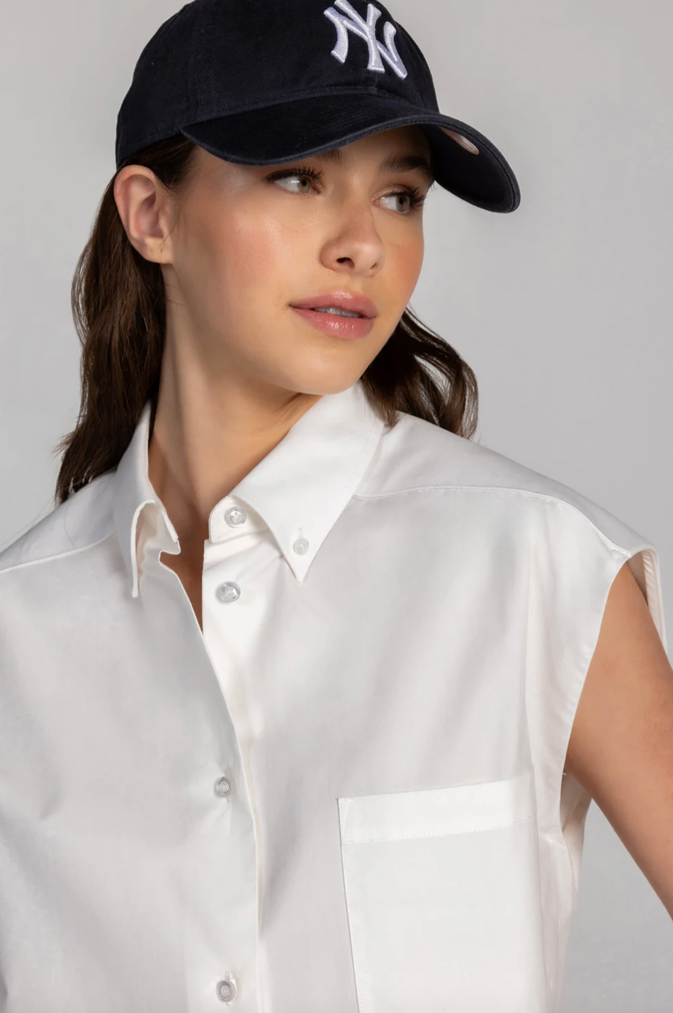 The Simply Sleeveless Shirt offers a clean, structured silhouette with a contemporary twist. Designed with a tailored fit and a sleeveless cut, it's perfect for layering or wearing solo during warmer days. The subtle front pockets and crisp woven fabric bring modern refinement to this versatile piece.
