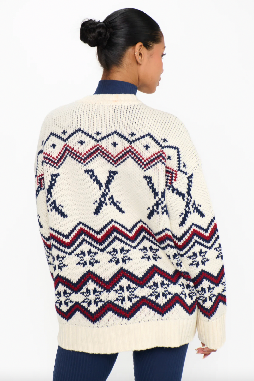 From chilly days to holidays, the Ski In Sweater is the perfect companion! With its oversized fit, drop shoulders, and ribbed details at the neckline, cuffs, and hem, it’s perfect for pairing with leggings and boots for full-on cozy vibes.