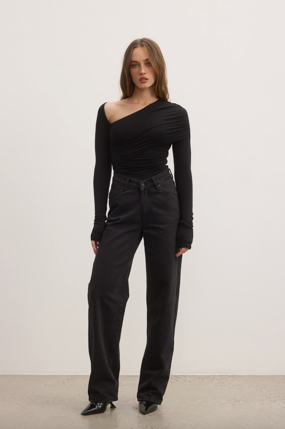 Introducing our Yani Top — crafted from our much-loved soft jersey, featuring a sharp front cut-out and strong ruching across the bust and over the shoulder. A statement silhouette with an elevated edge.